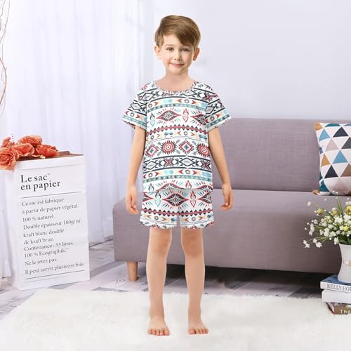 ALAZA American Indian Aztec Tribal Pajamas Set Short Sleeve Cotton Sleepwear Summer Pjs 2 Piece 5-14Y 6