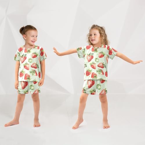 ALAZA Watercolor Strawberry Fruit Green Pajamas Short Sleeve 2 Piece Sleepwear Top and Bottom Pajama Set Unisex 6