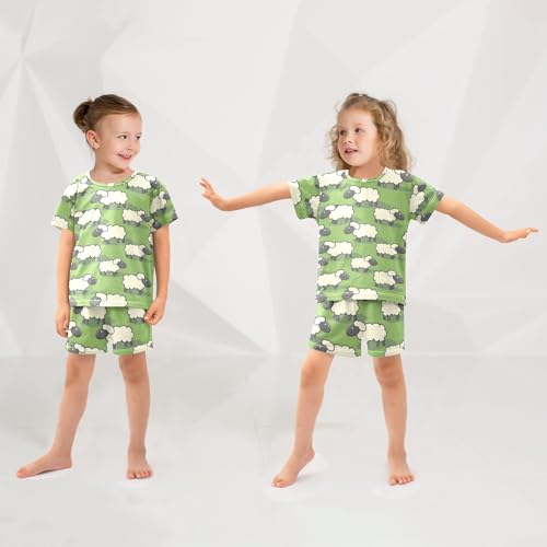 ALAZA Cartoon Sheep Green Pajamas Short Sleeve 2 Piece Sleepwear Top and Bottom Pajama Set Unisex 6
