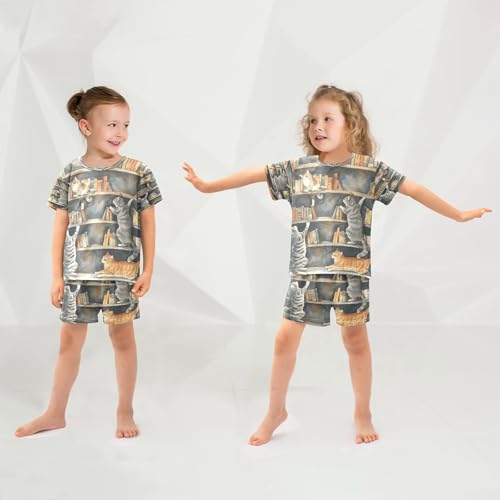 senya Short Sleeve Pajamas Sets Summer Cotton Sleepwear Cats Playing Bookshelf 2