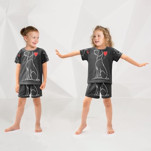 ALAZA Dachshund Dog Black Heart Pajamas Set Short Sleeve Cotton Sleepwear Summer Pjs 2 Piece 5-14Y 6