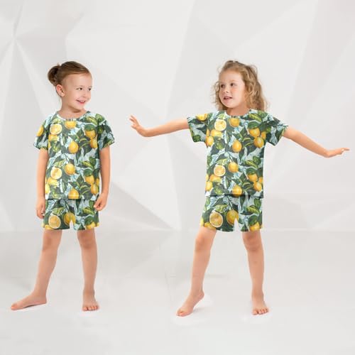 ALAZA Lemon Leaves Pajama Set Short Sleeve Sleepwear Soft Lounge Nightwear 1