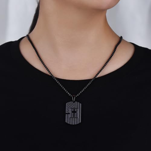 HOT ! Dog Tag Cross Necklace for Men, 22+2 Inches American Flag Stainless Steel Bible Verse Pendant Chain Religious Patriotic Jewelry Gifts