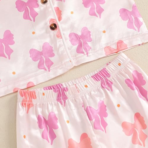 Kuriozud Toddler Kids Little Girls Halloween Satin Pajamas Satin Silky Pjs Set Short Sleeve Button Down Nightwear Sleepwear 4