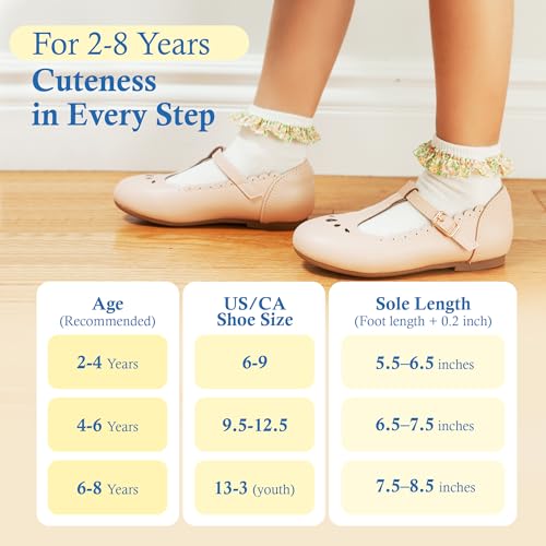 • Perfect Fit for Ages 2–8 – Size 2–4 yrs: US shoe 6–9 (5.5–6.5"), 4–6 yrs: US shoe 9.5–12.5 (6.5–7.5"), 6–8 yrs: US shoe 13–3Y (7.5–8.5"). Designed for little girls’ socks that stay in place without slipping.