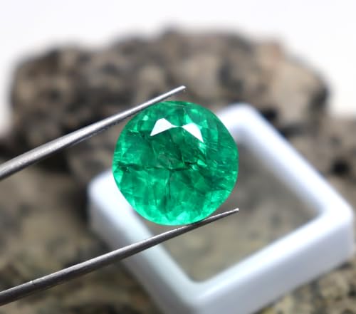 Natural 15ct Round Cut Emerald Gemstone Loose Green Colombian Stone Faceted Emerald Certified Stone Pendant Size Bracelet Size 5