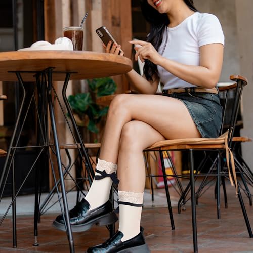 Violet Mist Lace Ruffle Crew Socks for Women Girls Bow Frilly Trim Cotton Cute Kawaii Lovely Fancy Lolita Goth Dress Socks 6