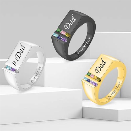 • 【 Customized Dad Ring 】This custom men ring express your invisible love and companionship for them, giving them a personalized gift is a romantic way to show your love.This personalized rings for dad can be customized with up to 8 birthstones. Free Engraving with names, words or special date to make it unique for you.