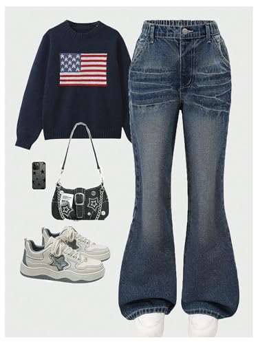 • Features: These retro jeans feature exaggerated flare legs, vintage wash, and five-pocket styling