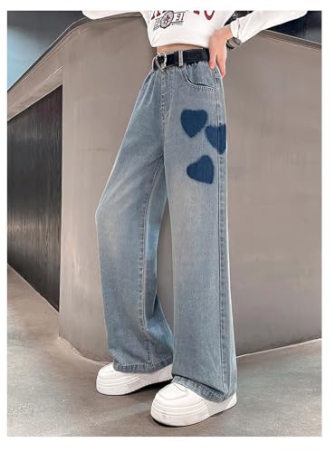 More information about Girl's Y2K Star Applique Elastic High Waist Jeans Wide Leg Loose Denim Pants Cute Y2K Trendy Tween Streetwear 4-14 Y