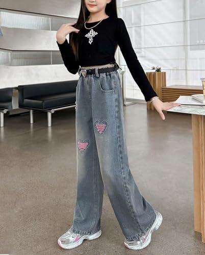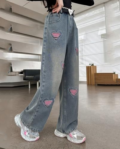 • Features: Ripped jeans for teens, straight wide legs provides maximum freedom for movement, no zipper or button, slant pockets, elastic waist baggy jeans for kids with hearts, so special for your cool girls, girls pull on jeans are easy to put on or take off