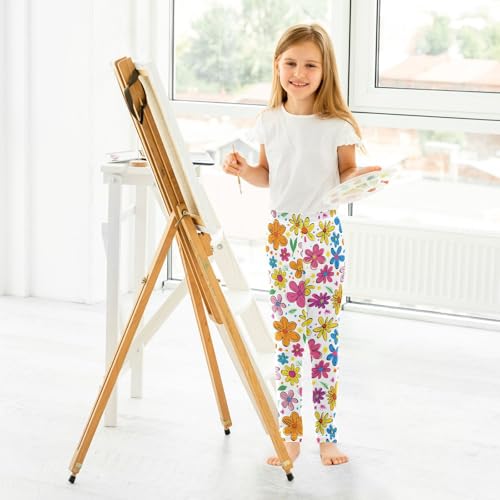 Cartoon Colorful Flower Girls Leggings Ultra Soft Compression Yoga Gym Pants for Kids 4-10T 7