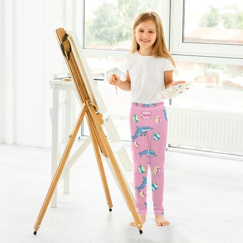 Cute Pink Dolphins Girls' Leggings Toddler Doodles Beach Balls Kids Yoga Pants Dance Active Tights 4T 7