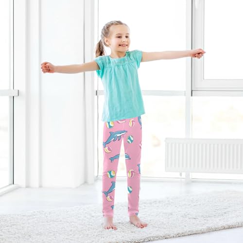 Cute Pink Dolphins Girls' Leggings Toddler Doodles Beach Balls Kids Yoga Pants Dance Active Tights 4T 4