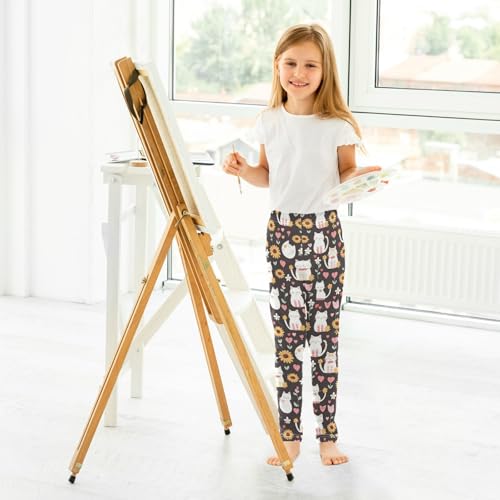 Cute Cats Girls' Leggings Toddler Doodles Sunflowers Hearts Kids Yoga Pants Dance Active Tights 4T 7