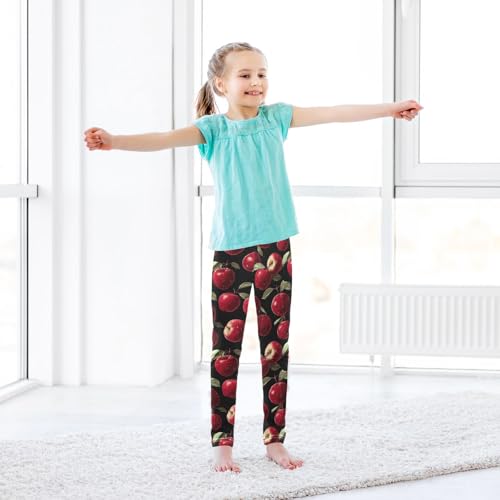 Girls Leggings Red Apples Fruit Black Soft Toddler Leggings for Girls Kids Pants Size 4T-10T 5