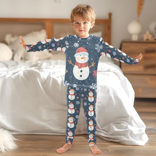 Fustylead Cute Christmas Snowman and Snowflakes Long Sleeve Top and Matching Bottom Cotton Pajama Sets 2