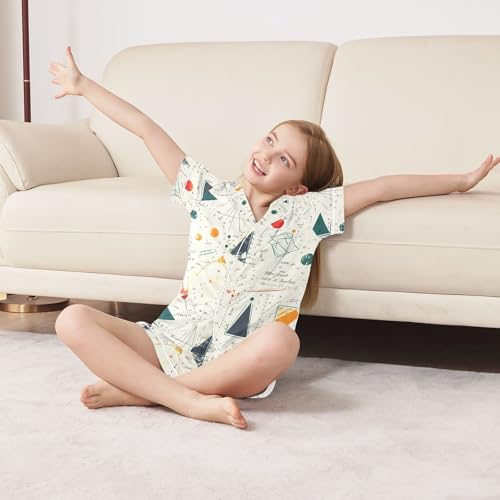 ALAZA Geometric Shape Math Pajamas Satin Pajama Set Short Sleeve Button Down Sleepwear 6