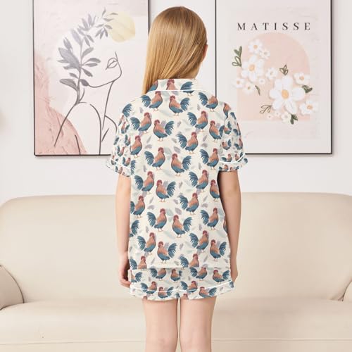 senya Cute Cartoon Rooster B Satin Summer Pajama Sets Silk Short Sleeve Button Down Sleepwear 1