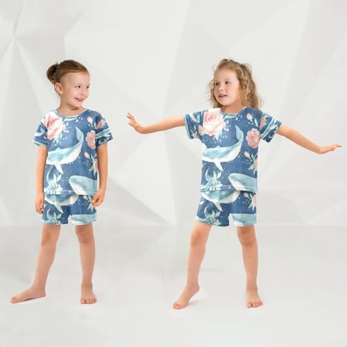 senya Short Sleeve Pajamas Sets Summer Cotton Sleepwear Whale Rose 2