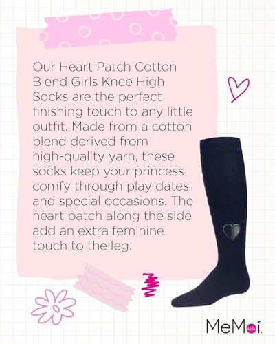 MeMoi Heart Patch Cotton Blend Girls Knee High Socks 6