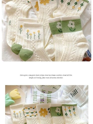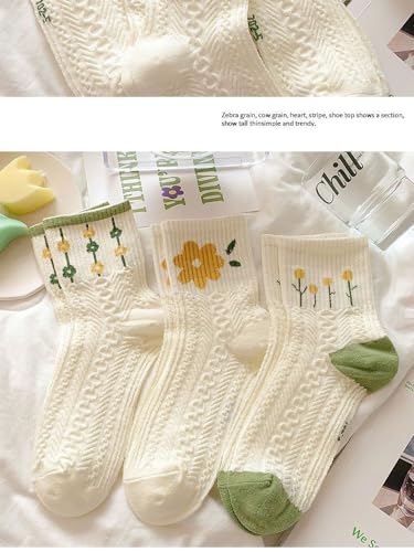 5 Pairs Cute Crew Socks Downtown Girl Aesthetic Fall Socks Gyaru Preppy Cotton Knit Clothes Y2K Cottagecore Stuffs (Strawberry,One Size) 7