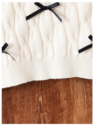 Floerns Girl's Short Sleeve Bow Cropped Sweater Crew Neck Cute Pullover Tops 4