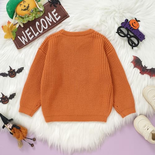 Kids Girls Boys Halloween Sweater Pumpkin Letter Long Sleeve Knitwear Top Baby Fall Winter Knitted Jumper 5