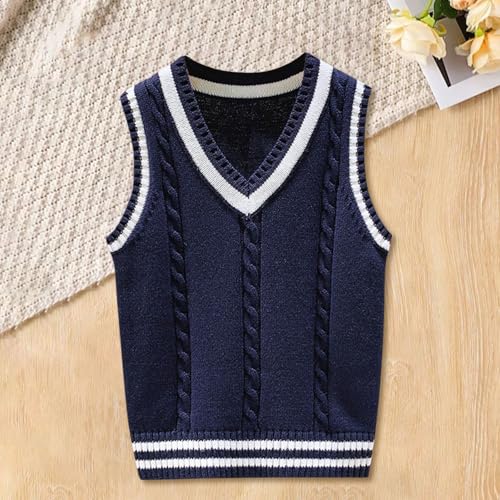 Boys Girls V Neck Stripe Knitted Sweater Vest Kids Casual Sleeveless Pullover Cable Knit Cotton School Uniform Clothes 4