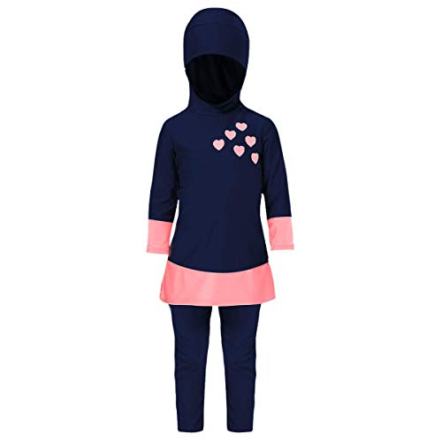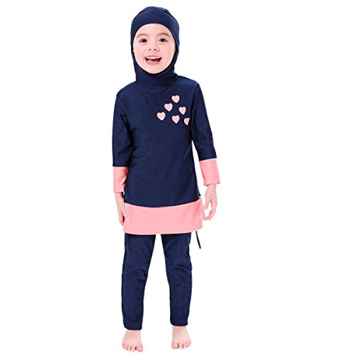 • ◕‿◕ Muslim Swimsuits for Girls Kids Full Body Islamic Swimming Suits Burkini with Hijab Modest Swimwear; 2 pieces, top with hijab and pants. Fashion design and it keeps your children covered during swimming. Even can be used to swim class, beach fun, diving, surfing, etc.
