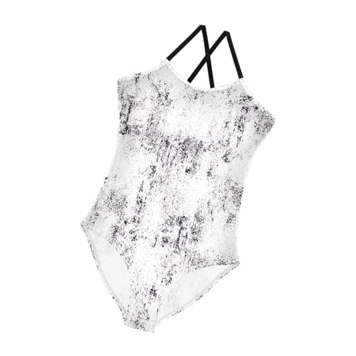 HOT ! Rough Black White Grunge Texture Girls Swim Suit with Adjustable Shoulder Strap, Beach Swim Suits Kids, 3-10