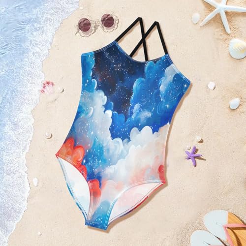 Starry Clouds Painting Girls Swimsuit Bathing Suit One Piece Swimsuits Summer Beach Swimwear 4