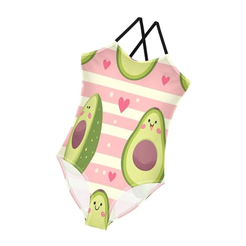 Cute Funny Avocado Pastel Stripes Swimsuit Toddler Girl, Beach Bathing Suit, Summer Swimsuits Girls 4