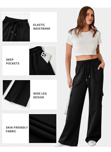 Aleumdr Women's Cargo Sweatpants Fleece High Waisted Wide Leg Pants Athletic Casual Baggy Sweat Pants with Pockets 6