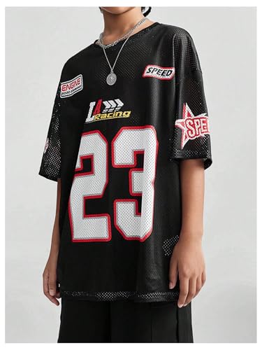 Verdusa Girl's Oversized Jersey Shirts Number Y2k Tops Letter Print Vintage Tees 2