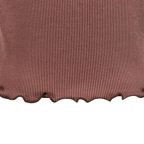 Sunny Fashion Girls T-Shirt Crop Top Brown Lettuce Trim Ribbed Knit Button Casual 4