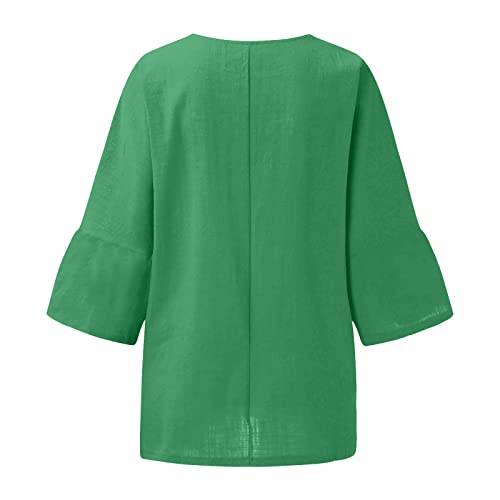 HOT ! I-158 Lime Green Teen Girls Casual Tops 3/4 Length Sleeve Blouses for Women Crewneck Faux Linen Loose Fit Long Plain Summer Fall Shirts 2025 Clothing Trendy XL