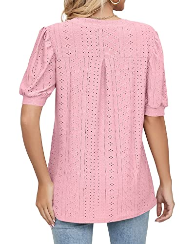 • Unique Designs -- Womens Puff Sleeve Tunics Designed with Crochet Eyelet.V Neck,Short Sleeve,Loose Fit,Solid Color.Classic and Basic style is never out of date.
