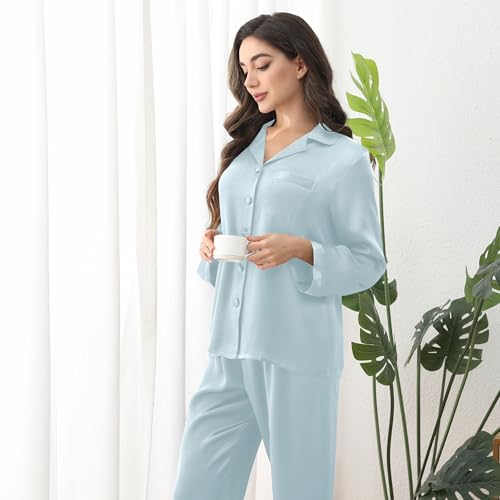 • ✨ Matching Buttons & Fine Cuffs: The silk buttons in the same color make the overall style of the silk pajamas more simple and pure. While precision-stitched cuffs provide aesthetically pleasing, practical and wear-resistant.