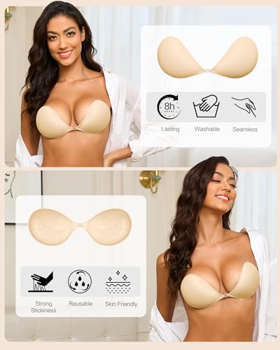 • Strapless Bras For Women: Beige Adhesive bra is made of sticky and skin-friendly hypoallergenic adhesive. Easy to wear and peel off, good stickiness does not cause any pain to the skin.