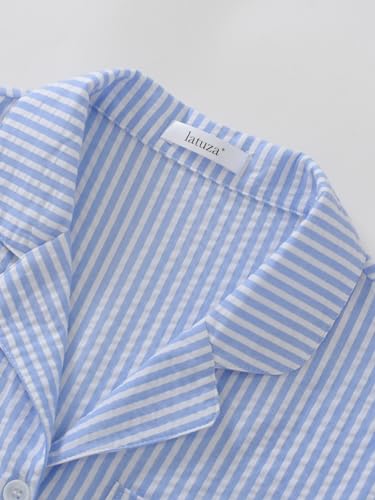 Latuza Women's Seersucker Cotton Summer Pajama Set Button Down Pj Set 7