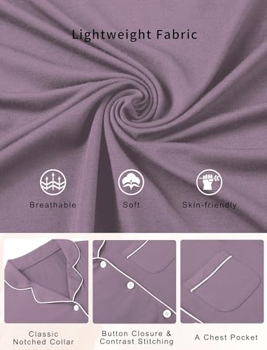 • Material —— This button down nightgown is made of 95% polyester and 5% spandex, which is soft, stretchy and skin-friendly, breathable and comfortable night shirt. V neck soft modal pajama dress with loose style, suitable for any body type, perfect for sleeping, lounging at home or taking a free walk in the park, makes you feel relaxed.