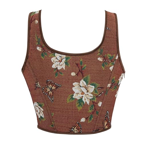 Women Renaissance Corset-Top Vintage Butterfly Flower Bustier Shapewear Lace Up Cincher Bodysuit Overbust Bodyshaper 7