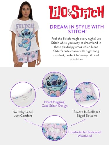 • Cozy and Stylish Women's PJs: Our women's Disney pajamas comfort with style. The cute purple short bottoms are adorned with a repeating Stitch and white hearts pattern, making these Disney pajamas for women ideal for relaxing at home or as a cozy gift.