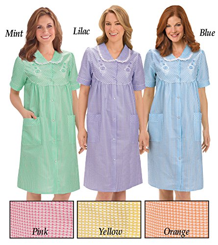 HOT ! Collections Etc Gingham Robe with Floral Accents, Snap-Front Closure and Lace Trim