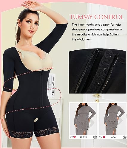 • UPPER ARM SHAPER AND U SHAPE PUSH UP: waist trainer bodysuit with U-shaped design help push up and support chest, giving a beautiful rounded shape. Other shapers with shoulder straps will dig into your skin and cause pain, but our shapewear for women tummy control plus with soft and silky upper arm shaper sleeves, fully wrap upper arms, tighten flabby fat, create you slimmer arms in a comfortable way.