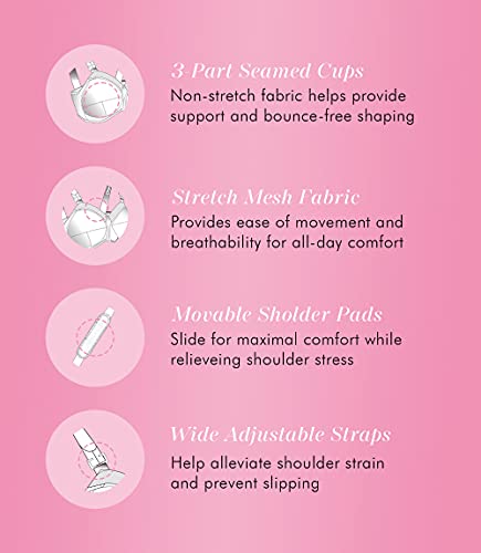 • ULTIMATE COMFORT. This bra not only provides full support — it's comfortable enough for all-day wear too. With soft, wireless cups and straps with movable shoulder pads, this bra provides long-lasting comfort.