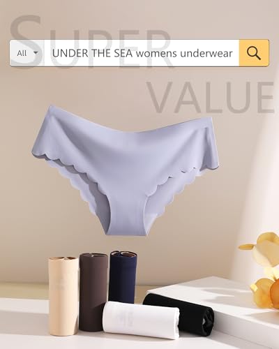 More information about UNDER THE SEA Seamless Underwear for Women Cheeky Low Rise Scalloped Edge Hipster No Show Bikini Panties S-XL