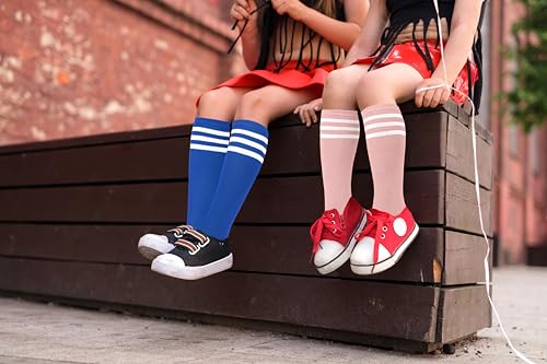 Benefeet Sox Kids Soccer Socks Toddler Knee High Tube Long Socks Soft for Girls Three Stripes Youth Cotton Soccer Socks 4