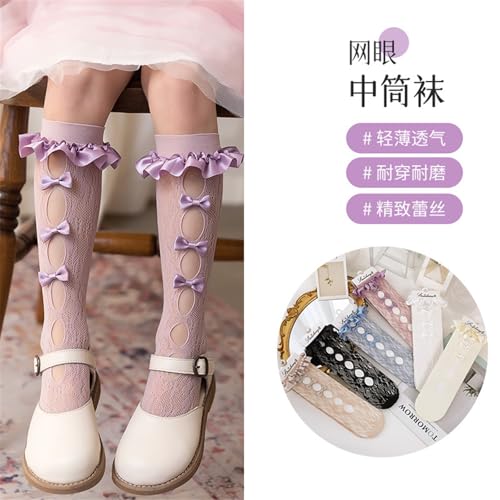 Loose Socks Lace Calf Bowknot High Boot Leg Cover Long Knee Stockings Hollow Out Children Trendy Wear 4
